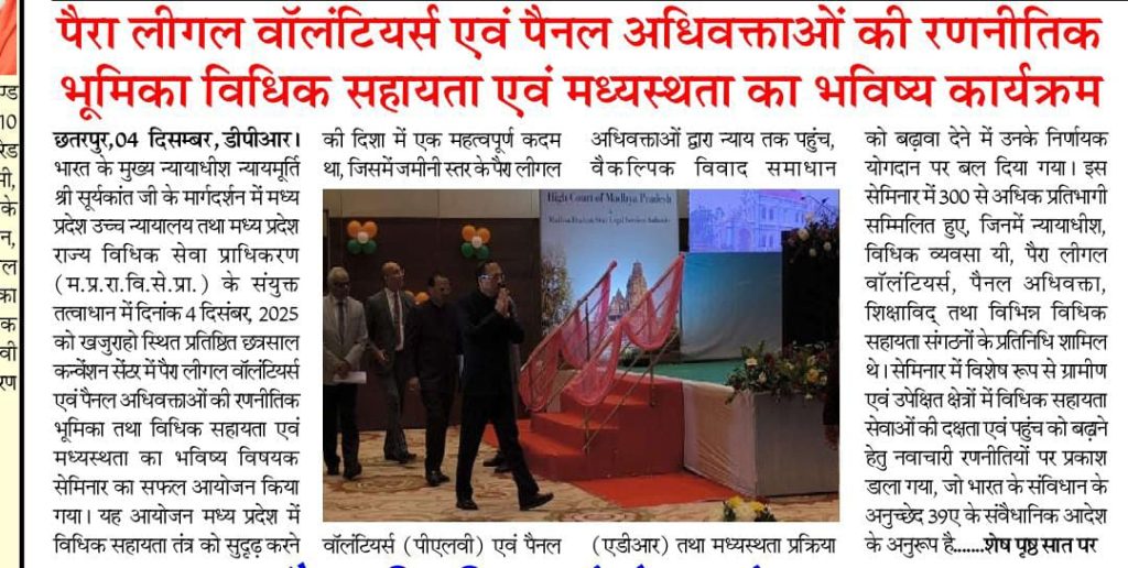 A One Day Confrence On “Strategic Role of Para-Legal Volunteers & Panel Lawyers: Future of Legal Aid & Mediation” Organised Dated On (04th December, 2025)