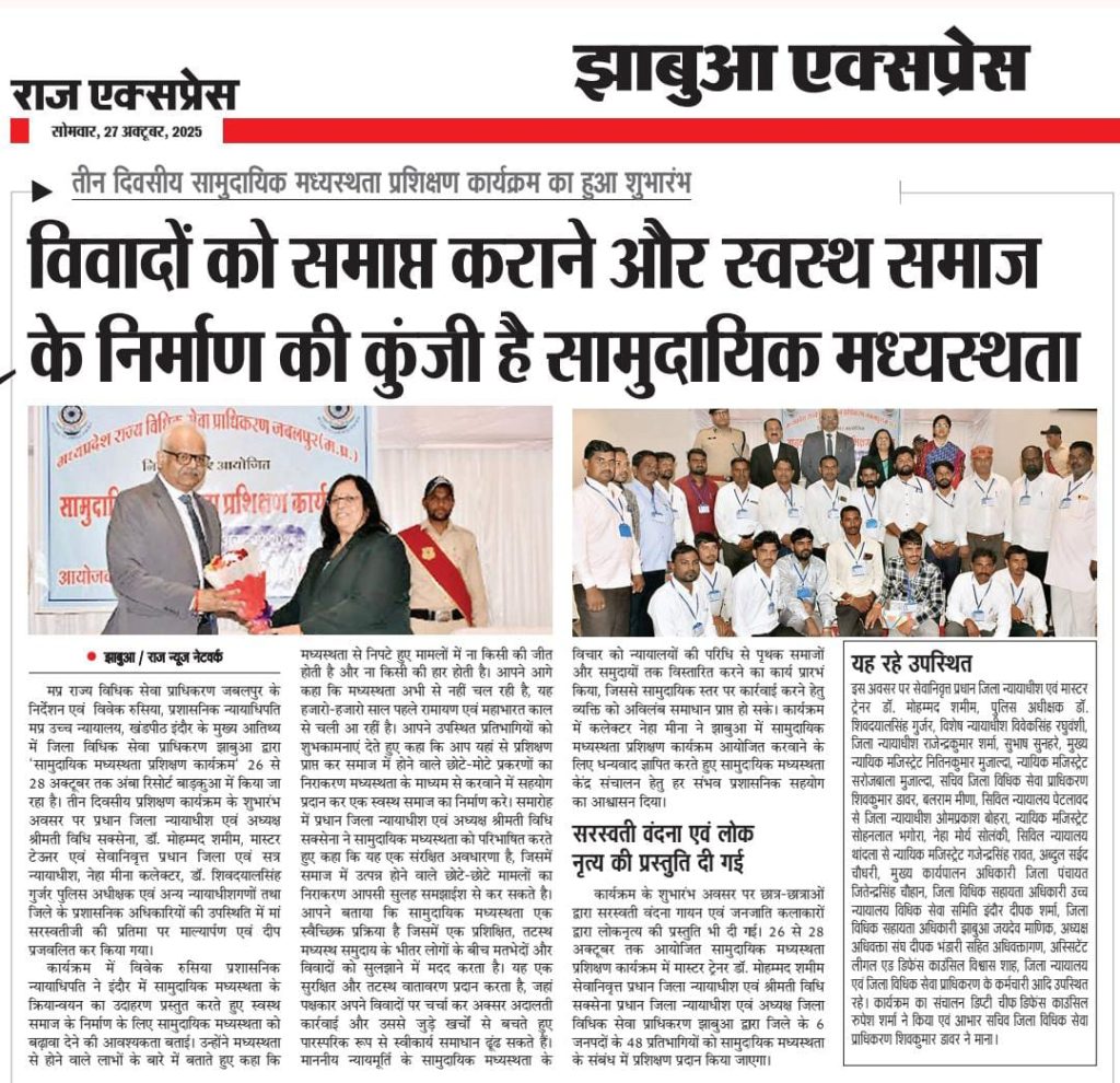 सामुदायिक मध्यस्थता प्रशिक्षण कार्यक्रम दिनांक 26 से 28 अक्टूबर 2025